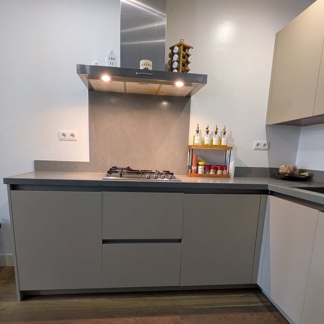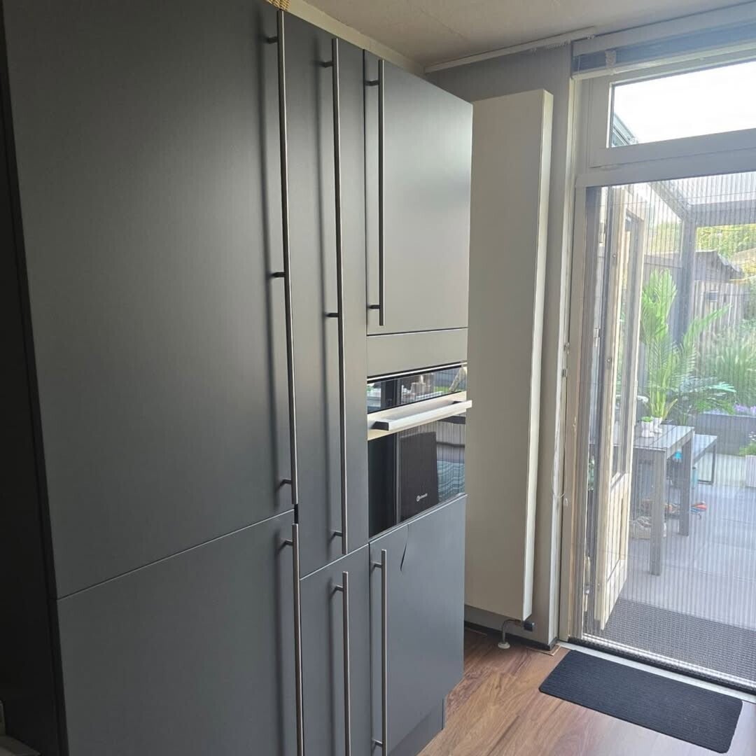 Voor deze keuken heeft de meubelmaker de deurtjes vervangen voor nieuwe, vlakke deurtjes. Deze zijn gewrapt in de een populaire groene tint. Hierdoor is de keuken een stuk strakker! Heb jij ook landelijke fronten en wil je een strak resultaat? Wij hebben de oplossing!